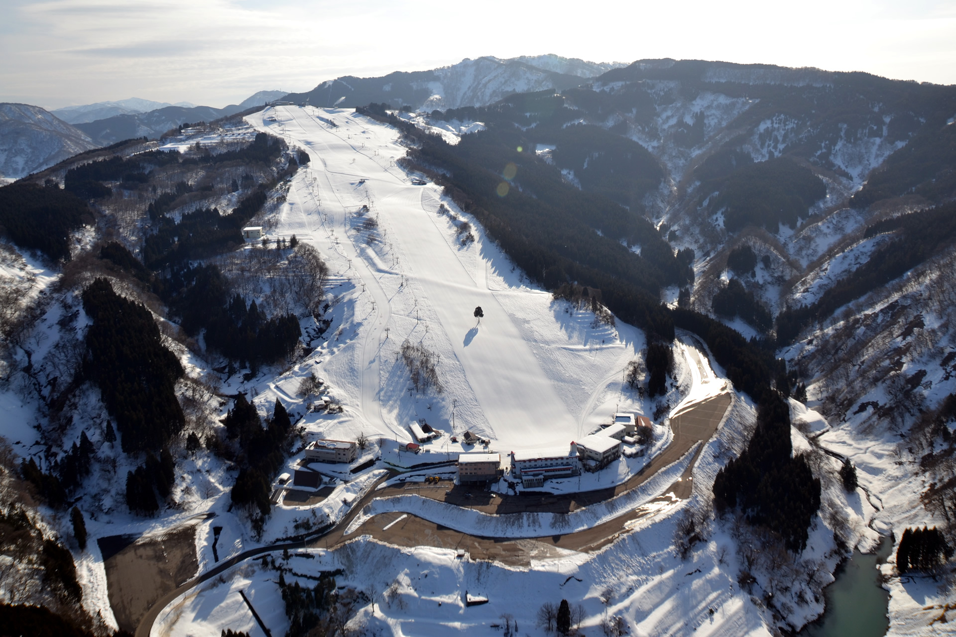 | ・最長滑走距離 2,000mの1枚バーン ・平均斜度 12° ・最大斜度 20°(東コース麓付近のエリア) ・総滑走面積 約60ヘクタール ・最大幅 約300m ・標高差 320m(最高標高650m、最低標高330m) ・初級 50%、中級50%、上級0%【緩斜面が多く、初級・中級者向け】 ・コース 3コース(東コース・正面コース・西コース) ・リフト 3基(クワッドリフト1基、ペアリフト2基) |